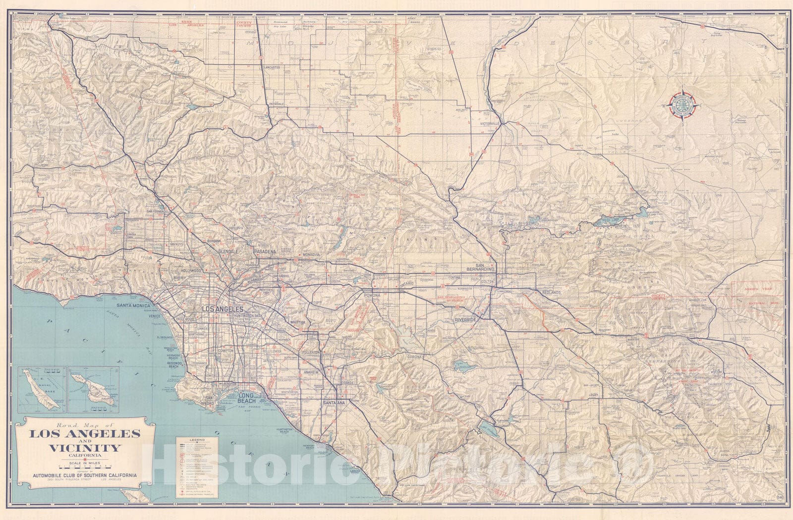 Historic Map : Road Map of Los Angeles and Vicinity 1940 , Vintage